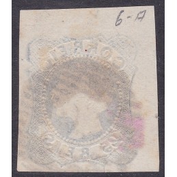 Nº 6 selo de 25 reis azul com pérolas afastadas, margens curtas mas simétricas. Exemplar em boas condições.