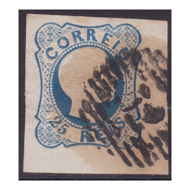 Nº 12 selo de 25 reis azul linhas duplas com carimbo forte. Exemplar em boas condições.