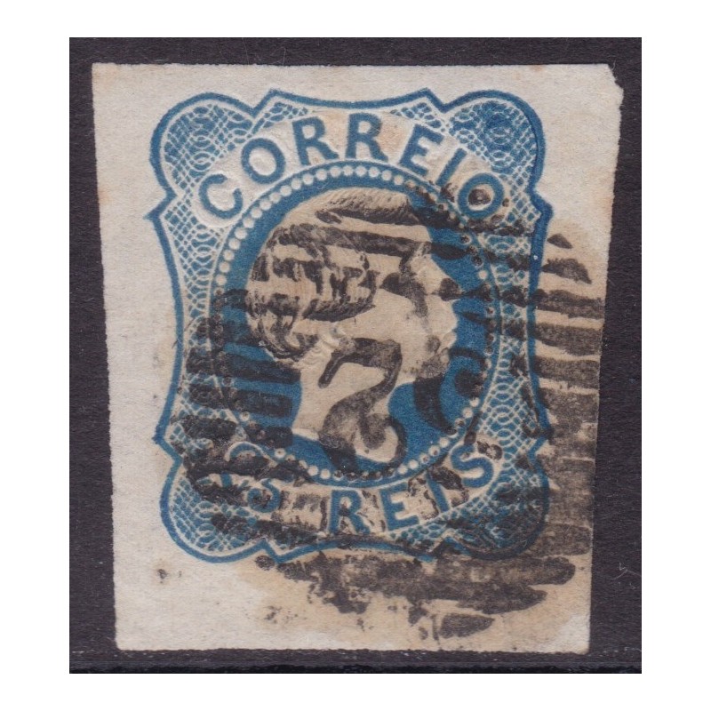 Nº 11 selo de 25 reis azul, linhas simples, margens normais e regulares, carimbo forte - Exemplar normal