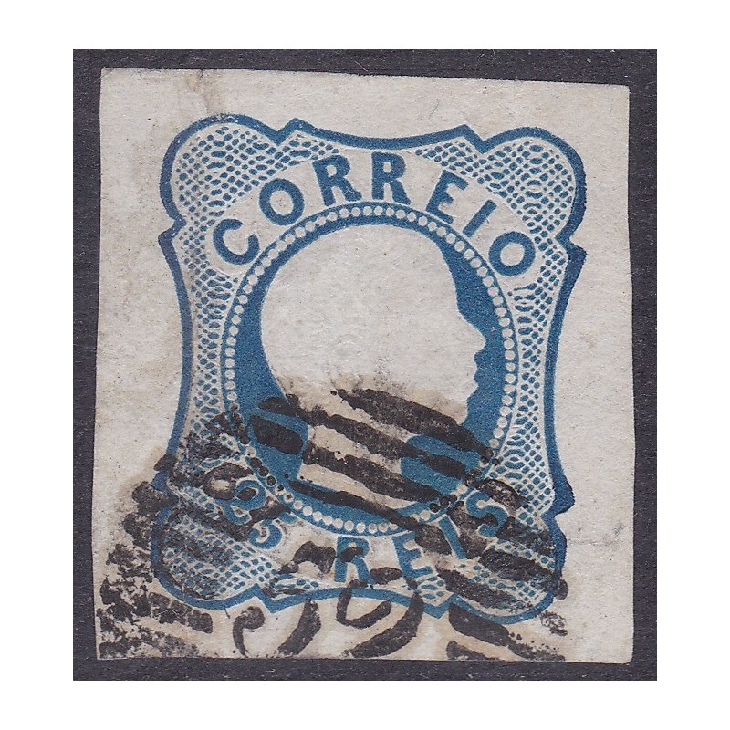 Nº 11 selo de 25 reis azul, linhas simples, margens normais e regulares, carimbo forte - Exemplar normal