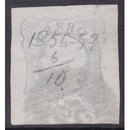 Nº 12 selo de 25 reis azul linhas duplas com margens curtas. Exemplar em boas condições.