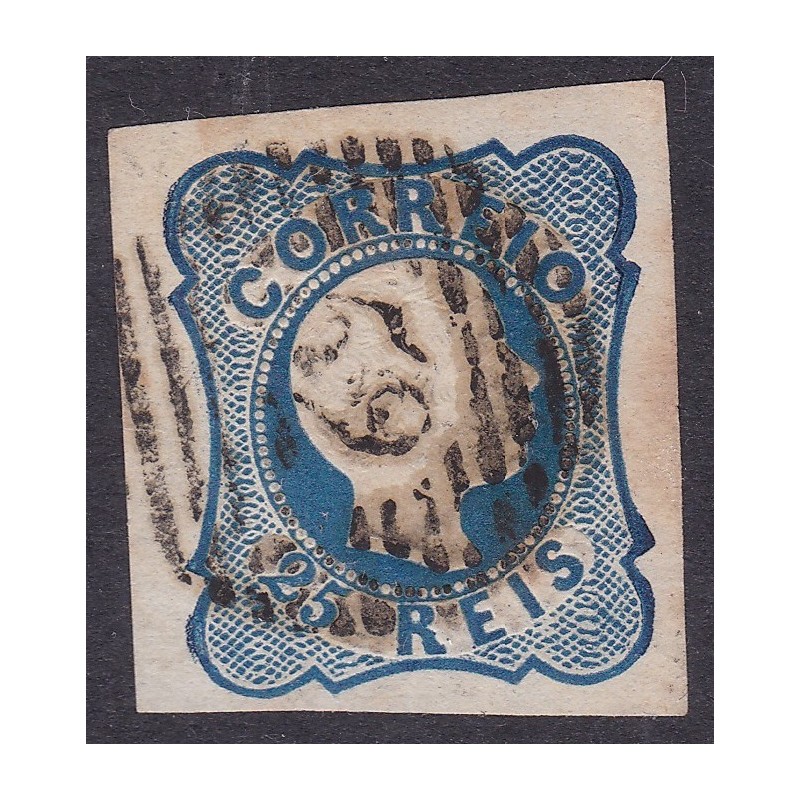 Nº 11 selo de 25 reis azul, linhas simples, margens normais e regulares, carimbo forte - Exemplar normal