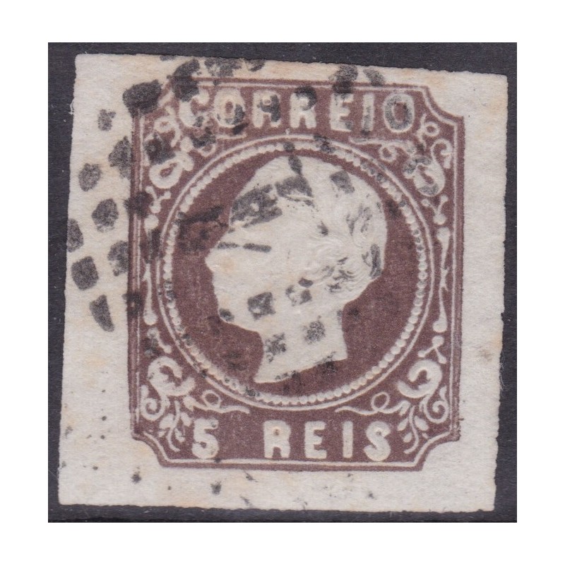 Nº 14 selo de 5 réis castanho. TIPO III com uma margem de luxo e outras normais. Exemplar em boas condições.