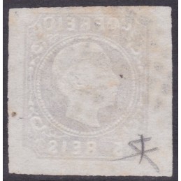 Nº 14 selo de 5 réis castanho. TIPO I com margens de luxo e uma curta. Exemplar em boas condições.