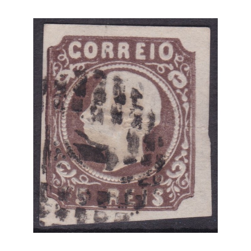 Nº 14 selo de 5 réis castanho. TIPO III com margens normais com um curtas. Exemplar em boas condições.
