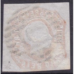 Nº 14 selo de 5 réis castanho. TIPO I com margens normais. Exemplar de 2ª escolha com cunho estalado.