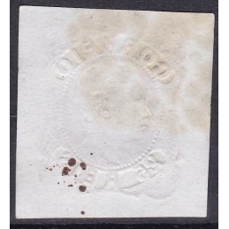 Nº 14 selo de 5 réis castanho. TIPO I com margens normais. Exemplar de 2ª escolha com cunho estalado.