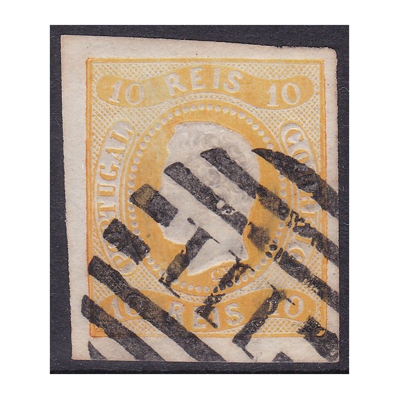 Nº 20 selo de 10 reis amarelo com margens simétricas mas curtas. Exemplar normal