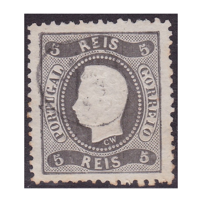 Nº 27 selo de 5 reis preto usado. Carimbo muito ligeiro. Exemplar Normal