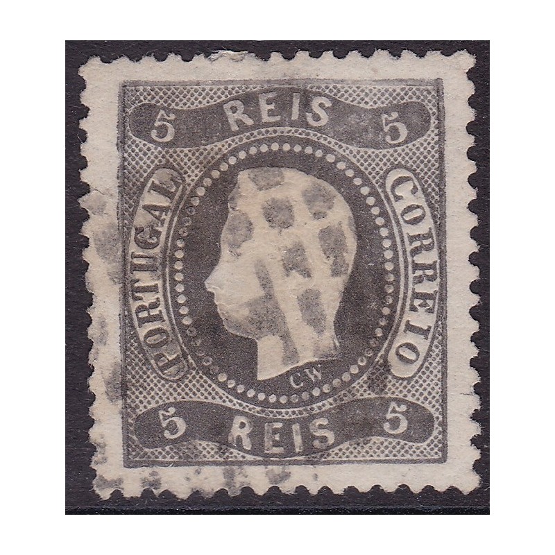 Nº 27 selo de 5 reis preto. Carimbo muito ligeiro. Denteado irregular. Exemplar Normal