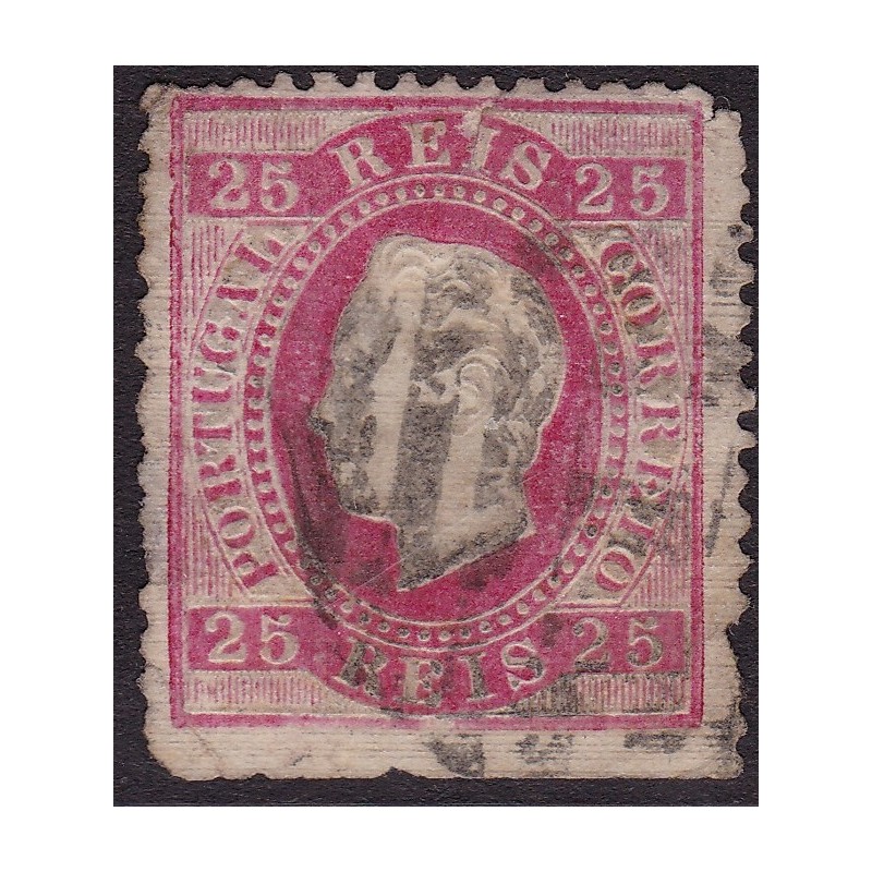 RARO - Nº 40 papel COSTELADO, selo de 25 réis, denteado 12½. Exemplar 2ª escolha muitos defeitos.