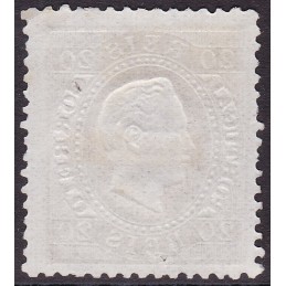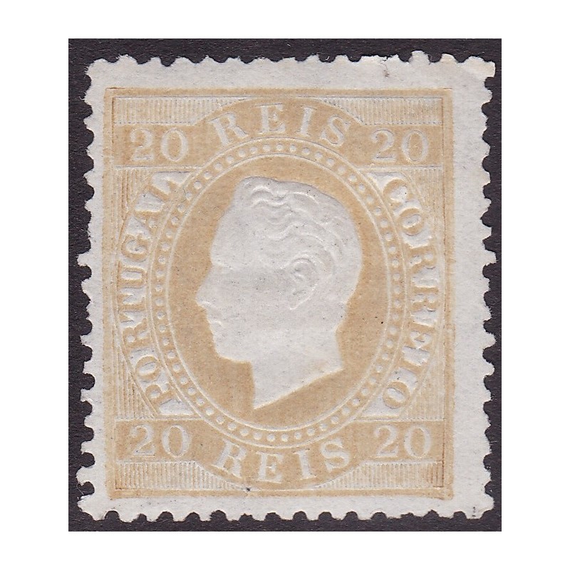 Nº 39 selo de 20 reis bistre sem goma. Com certificado. Tipo I, papel liso denteado 12½ . Ver características . Exemplar com pequenos defeitos.