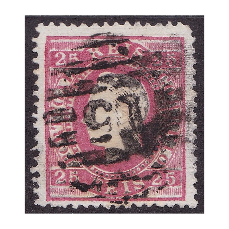 RARO - Nº 40 papel COSTELADO, selo de 25 réis, denteado 12½. Exemplar 2ª escolha com falta de canto superior.