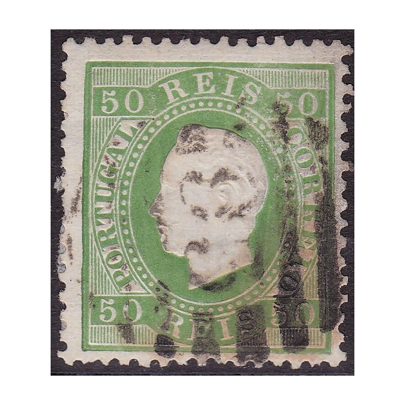 RARO - Nº 41 papel COSTELADO no verso, selo de 50 reis verde, denteado 12½ - Exemplar em boas condições.
