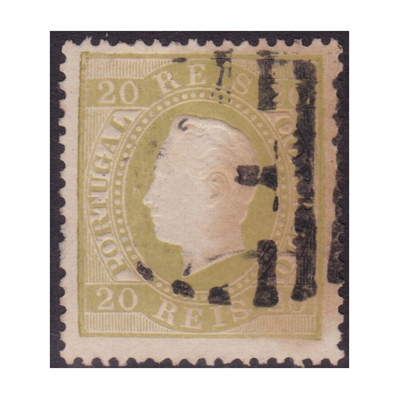 Nº 39 selo de 20 reis bistre sem goma. Com certificado. Tipo I, papel liso denteado 12½ . Ver características . Exemplar com pequenos defeitos.