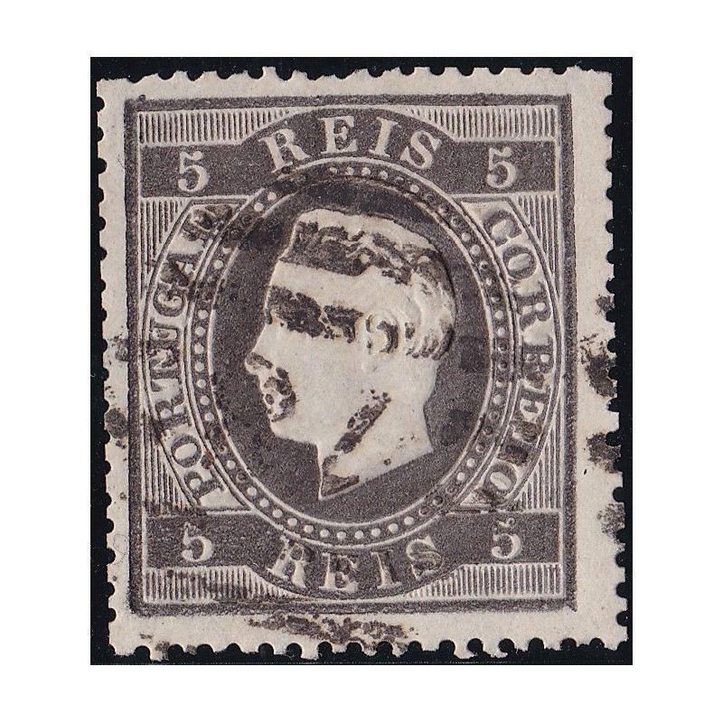 RARO - Nº 36 selo de 5 reis preto papel liso denteado 14