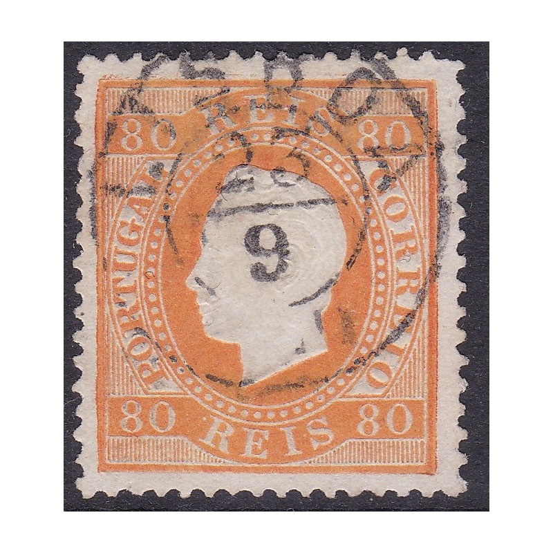 Nº 42 selo de 80 réis laranja papel liso denteado 13½. Exemplar de boas condições.