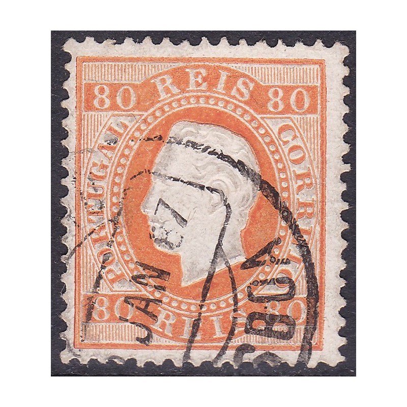 TELEGRAFO - Nº 42 selo de 80 réis laranja papel porcelana denteado 13½, sem goma. Exemplar com Obliteração Telegráfica com Estrela em boas condições.