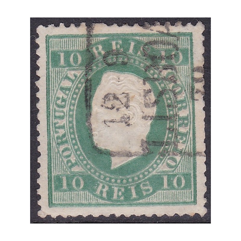 Nº 49d selo de 10 réis verde azul. Denteado 13½ . Exemplar de denteado irregular.