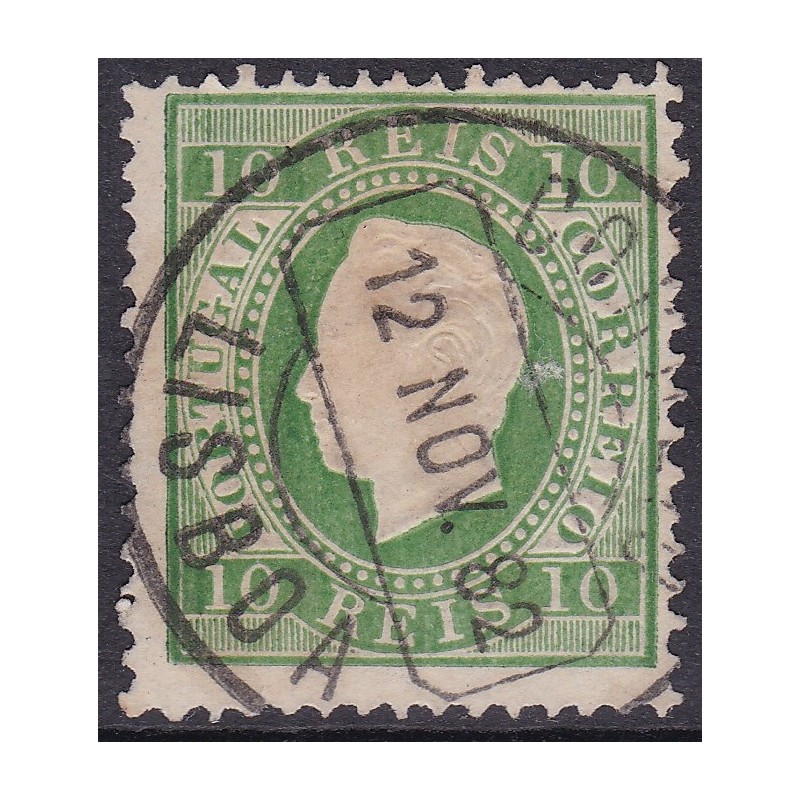 Nº 49 selo de 10 réis verde. Papel liso dent. 12½. Exemplar em boas condições.