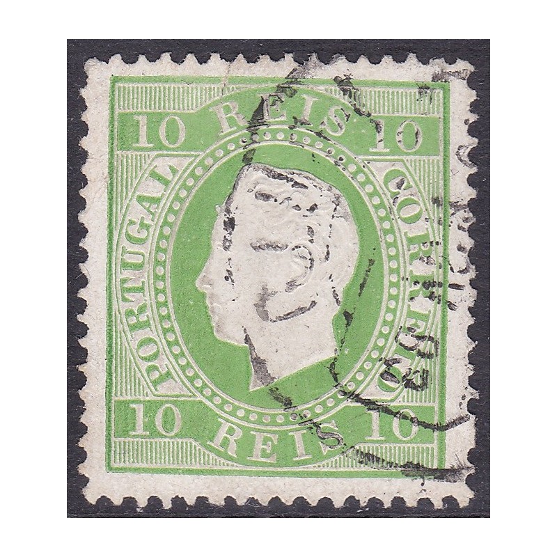 Nº 49 selo de 10 réis verde. Papel porcelana dent. 13½. Exemplar com quadro partido 2ª escolha.