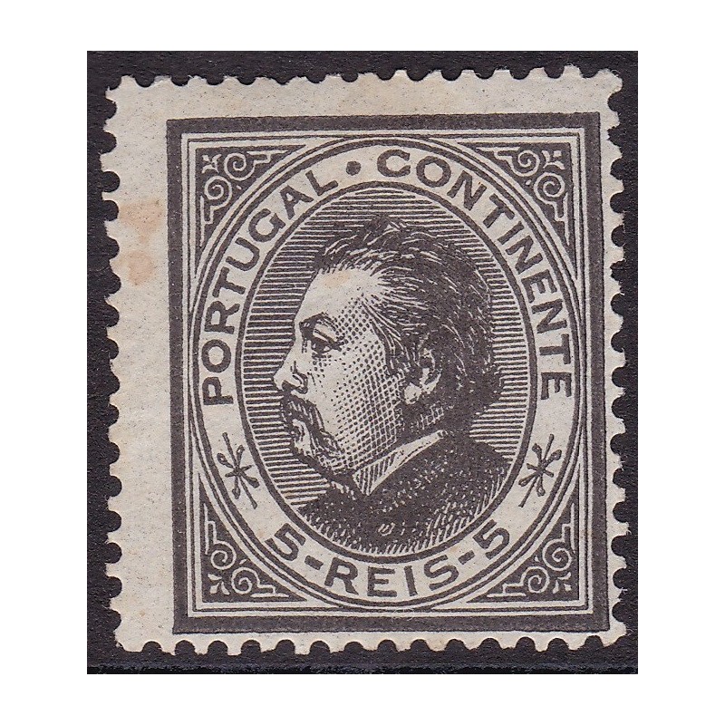 Nº 52 selo de 5 réis preto papel liso denteado 13½ - Exemplar com denteado muito irregular.