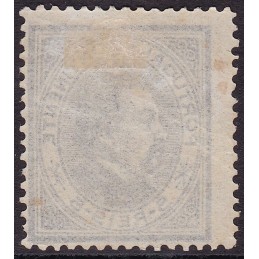Nº 53 selo de 25 réis azul cinzento papel liso denteado 13½, com charneira e goma original - Exemplar um pouco descentrado, mas em boas condições.