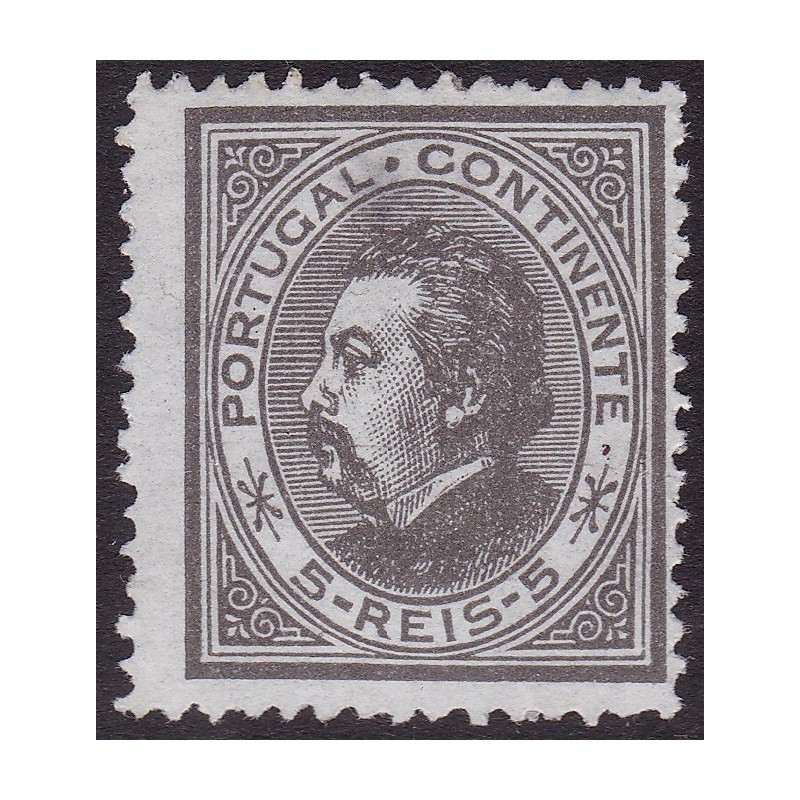 Nº 52 selo de 5 réis preto papel liso denteado 13½ sem goma - Exemplar com denteado muito irregular.
