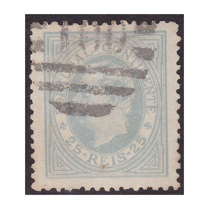 Nº 53 selo de 25 réis azul cinzento papel liso denteado 12½ - Exemplar em boas condições.
