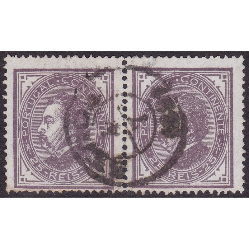 Par nº 54 selo de 25 réis lilás vermelho papel liso denteado 13½ - Exemplar em boas condições.