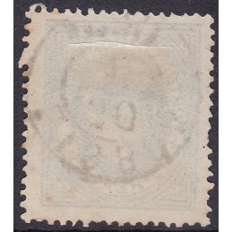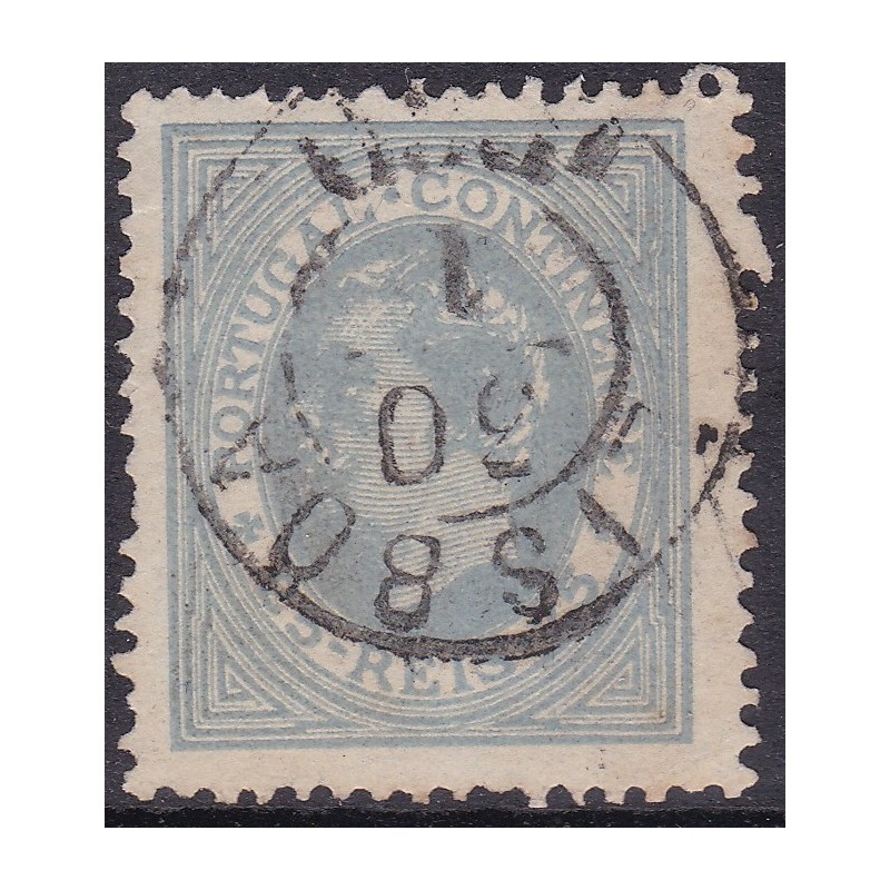 Nº 53 selo de 25 réis azul cinzento papel liso denteado 13½ - Exemplar com denteado irregular.