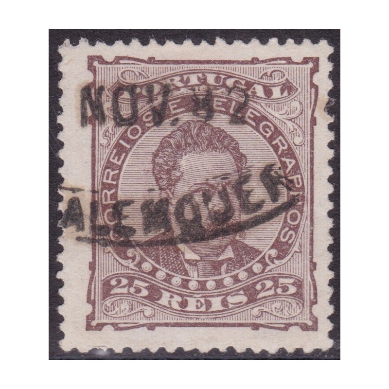 Nº 57 selo de 25 réis castanho papel liso denteado 13½