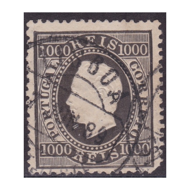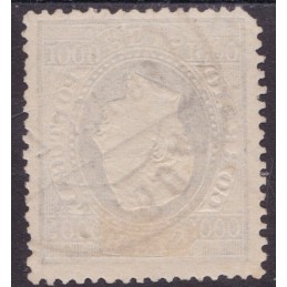 Nº 67 selo de 1000 réis preto papel liso denteado 13½. Exemplar com denteado irregular 2ª escolha.