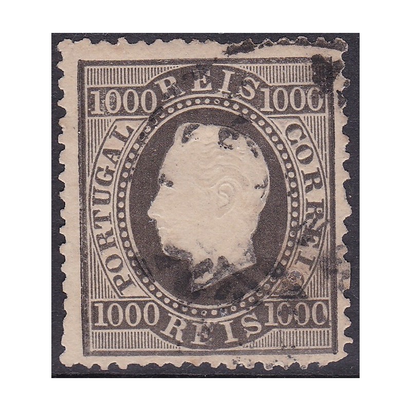TELEGRAFO - Nº 67 selo de 1000 réis preto papel liso denteado 12½. Obliteração telegráfica em estrela, Exemplar com falta de cantos 2ª escolha.