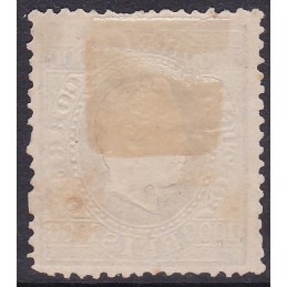 Nº 67 selo de 1000 réis preto papel liso denteado 13½. Exemplar com falta com dente 2ª escolha.