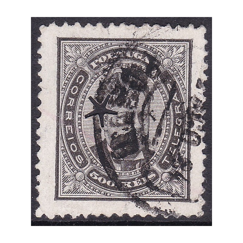 TELEGRAFO - Nº 65 selo de 500 réis Violeta papel porcelana denteado 12½. Obliteração telegráfica em estrela, Exemplar em boas condições.