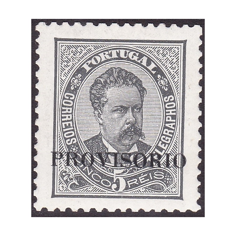 Nº 89 selo de 5 réis preto papel porcelana denteado 11½ Sob. D, sem charneira e goma original. Exemplar com dente mais curto mas em boas condições.