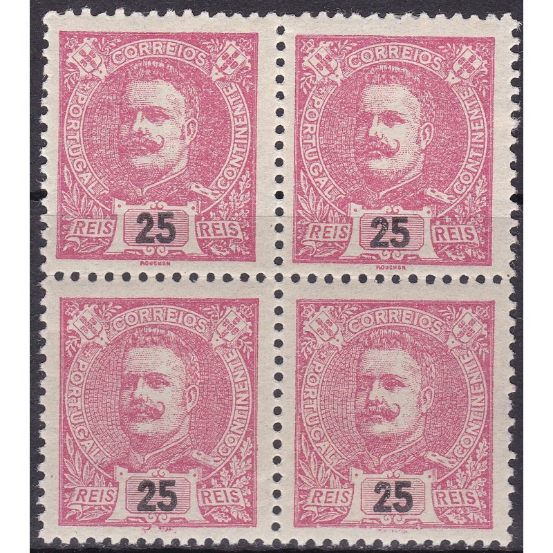 Nº 141 selo de 25 réis carmim rosa, 3 selos sem charneira e 1 com charneira e goma original. Exemplar em boas condições.