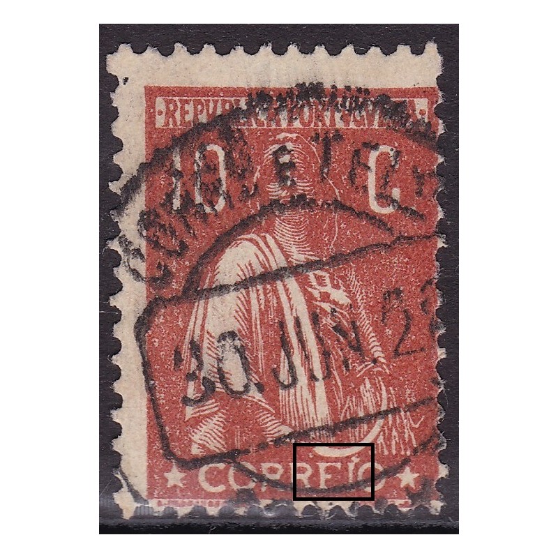 Selo nº 207 usado em papel pontinhado vertical e denteado 15x14. Variedade de cliché LVIII. Exemplar com defeito no canto.