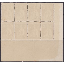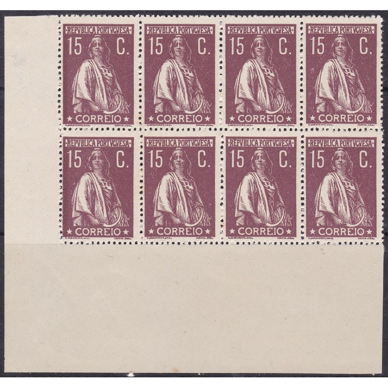 Bloco de 8 selos nº 216, canto de folha sem charneira e goma original, papel pontinhado vertical denteado 15x14. Exemplar em boas condições.