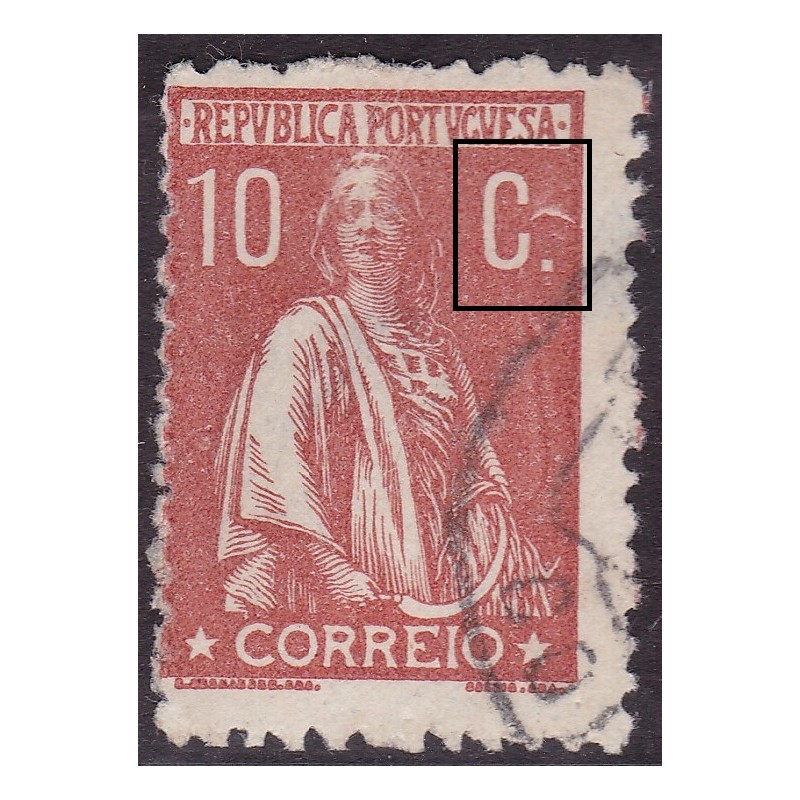 Selo nº 207 usado em papel pontinhado vertical e denteado 15x14. Variedade de cliché LVIII. Exemplar com defeito no canto.