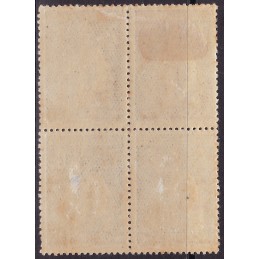 PROVA EM CASTANHO - Quadra nº 213 com charneira e goma original, papel Porcelana e denteado 15x14. Exemplar com os dois selos inferiores com pequeno adelgaçamento.