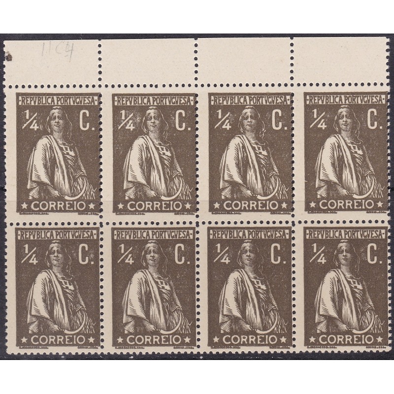 Quadra nº 206 sem charneira, papel liso e denteado 12X11½- variedade de cliché XXVI. Exemplar em boas condições.