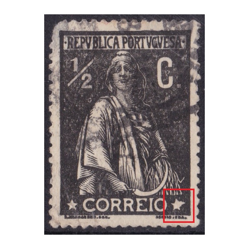 Selo nº 207 usado em papel pontinhado vertical e denteado 15x14. Variedade de cliché LVIII. Exemplar com defeito no canto.