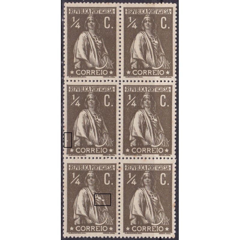 Bloco nº 206 sem goma em papel pontinhado vertical e denteado 15x14 - variedade de cliché XXV e XXXV. Exemplar com pontos de oxido.