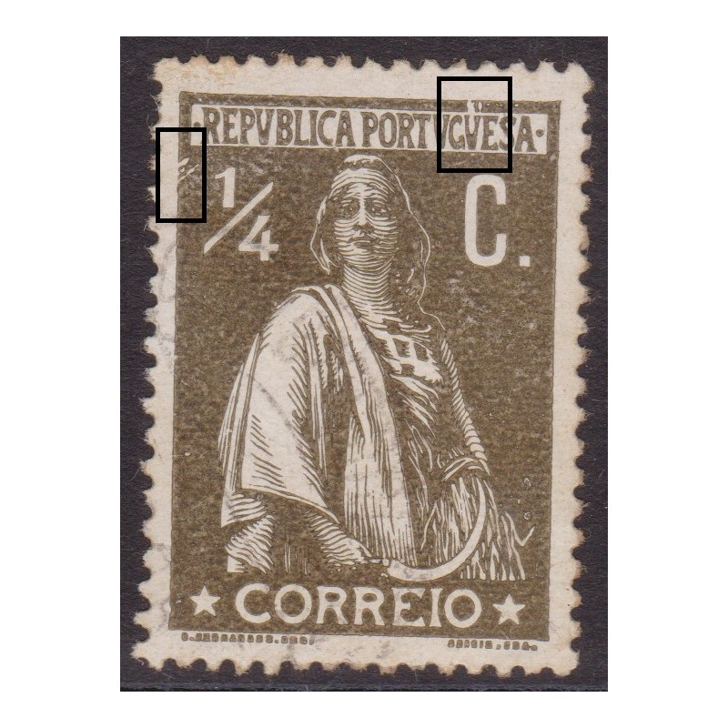 Selo nº 215 usado em papel cartolina e denteado 15X14 Variedade de cliché não catalogada. Exemplar em boas condições.