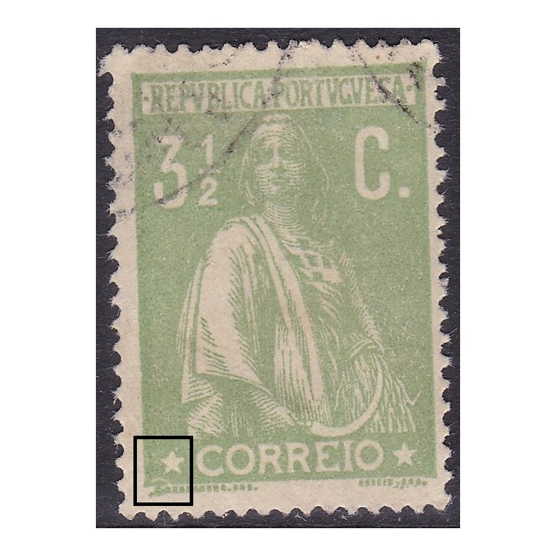 Selo nº 226 usado em pontinhado vertical e variedade de cliché não catalogada. Exemplar em boas condições.