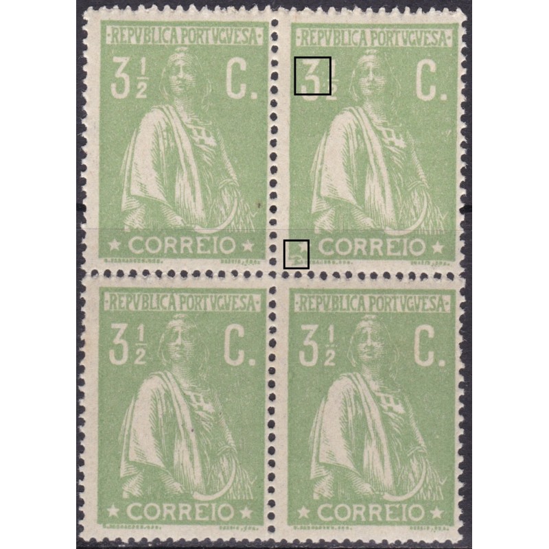 Quadra do selo nº 225 sem charneira, papel pontinhado e denteado 15x14. Com variedade de cliché não catalogada. Exemplar em boas condições.