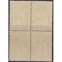 Quadra do selo nº 229 sem goma, papel acetinado e dent. 12x11½. Impressão defeituosa. Exemplar em boas condições.