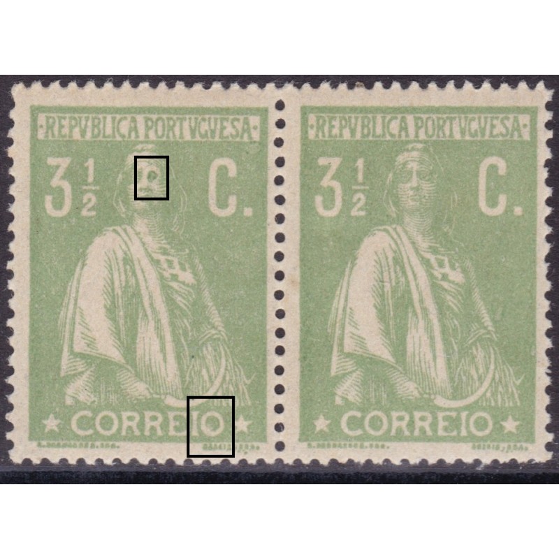Par nº 225 sem charneira, papel pontinhado e denteado 15x14, variedade de cliche XII. Exemplar em boas condições.